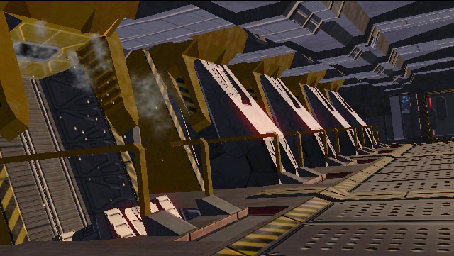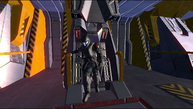 HEV pods are mounted in special slanted alcoves on board specially equipped UNSC ships. The ship's computer is responsible for determining launch trajectory, initial deploy velocity, etc. The HEV is released from clamps that hold it above its launch chute. The main hatch of the HEV unlatches and slides upwards. When latched, it is hermetically sealed to contain occupant atmosphere, and keep the hazardous outside atmosphere and temperatures out. All thumbs lead to full-sized images