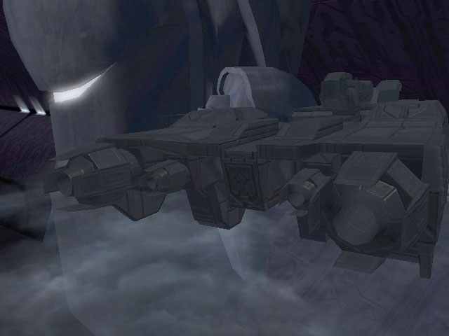 In Amber Clad stayed on-station at Halo to supply weapons and equipment to the Marines and Spartan-117. The ship was overtaken by Flood Combat Forms at Halo's Library and a precision Slipspace jump was executed by the Flood, positioning the ship within the Covenant city/station of High Charity in nearby orbit of Delta Halo. In Amber Clad glided into a large support pillar inside the city and embedded itself into the structure, damaging it beyond repair.