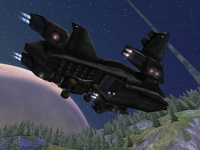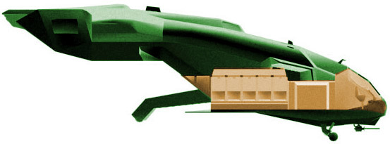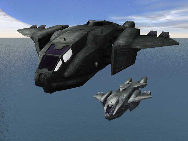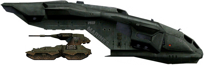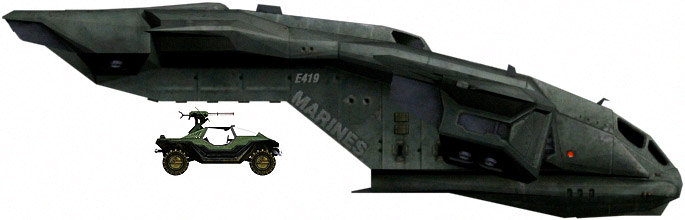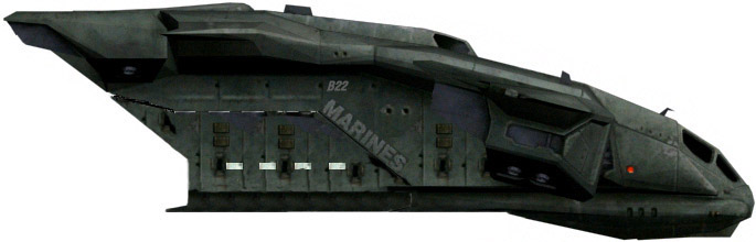 The Pelican Dropship has been a trans-atmospheric mainstay of the UNSC for many decades, with only minor design changes and improvements over the years. Its purpose is the deployment and extraction of UNSC Marine forces, with the ability to ferry in mechanized infantry such as Warthogs and Scorpion tanks. (This is somewhat the opposite use of the UNSC's other dropship design, the Albatross, called upon mainly for the delivery of vehicles, but with limited troop capacity.)