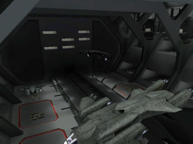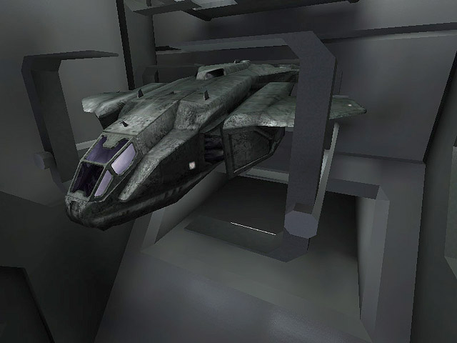 Pelican stored in docking framework in Launch Bay 7, UNSC Pillar of Autumn