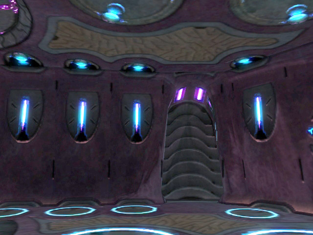 From the cockpit, a narrow corridor leads to the ship's troop bay in the main body of the ship. The troop bay of a Phantom can optimally accommodate ten warriors along the bulkhead sides and a row of troops in the bay's center area.