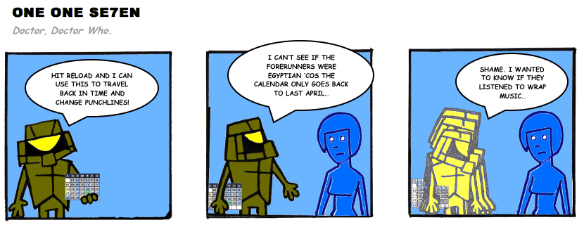 On April 30, 2003, Stuntmutt began turning in episodes of a new comic known as One One Se7en. We'll present them here, in the order in which they were submitted, as they come in. New submissions were added Monday, Wednesday, and Friday. On March 3, 2008, One One Se7en was retired from regular releases - Stunt's life got a tad too busy for 3 strips per week. (He still comes by with new content when the situation arises, however.)